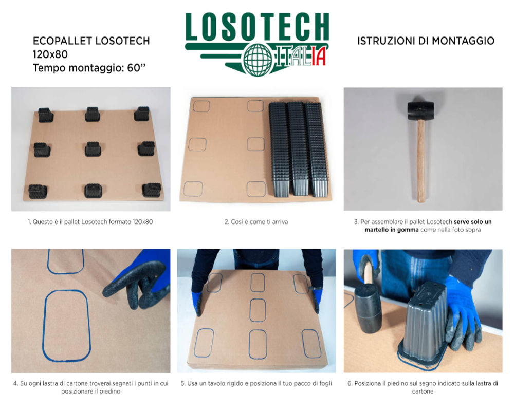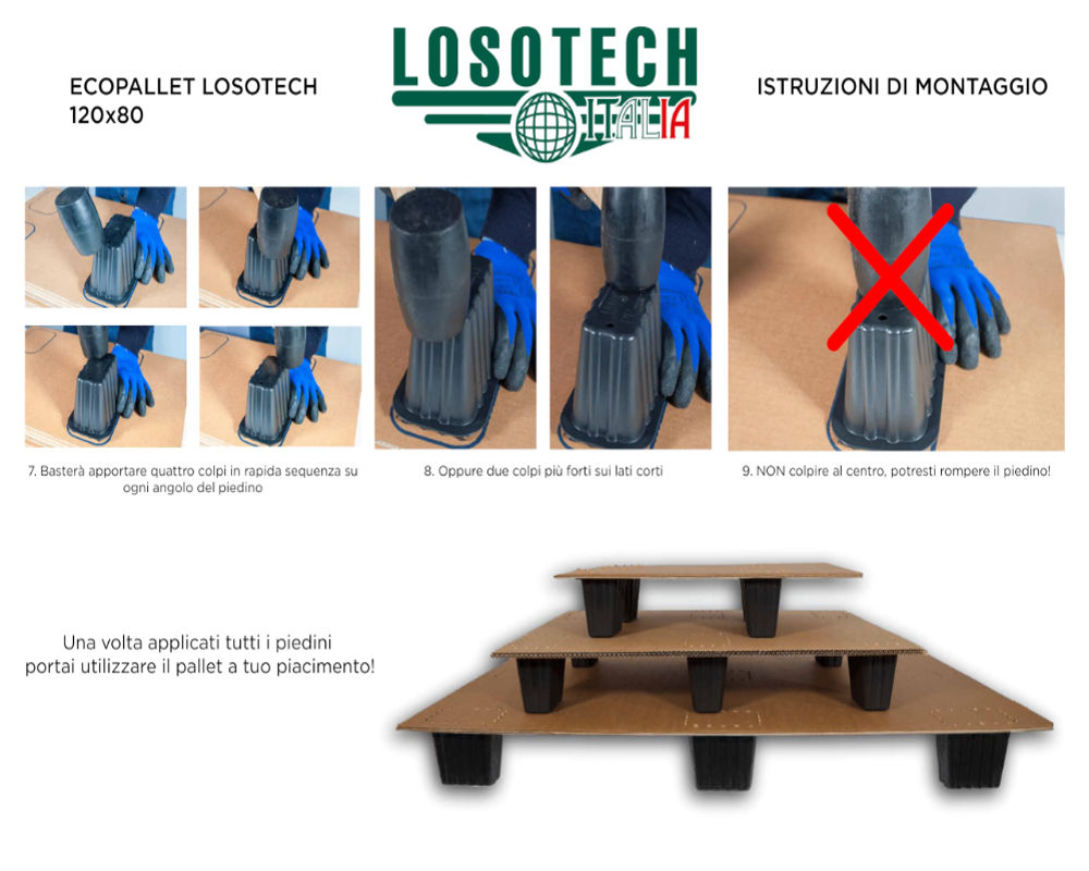 Pianale per ECOPALLET LOSOTECH in cartone doppia onda da 10mm con trattamento antiumido; confezione da 10 pezzi 80×120 cm 9 piedi